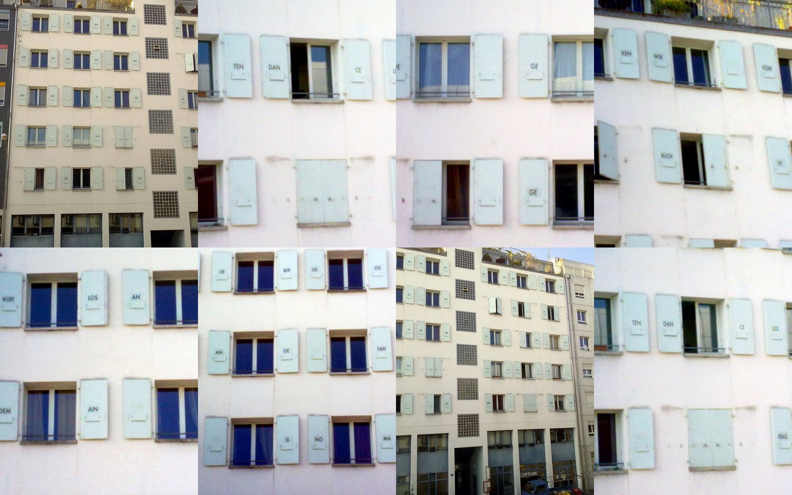 Opposite the main post office in Geneva are some great shutters which only have full words on them if both shutters are open - the other fun thing is that, this being Switzerland, the words are in both French and German. Unfortunately sometimes the shutters get painted and half of the word seems to get lost.